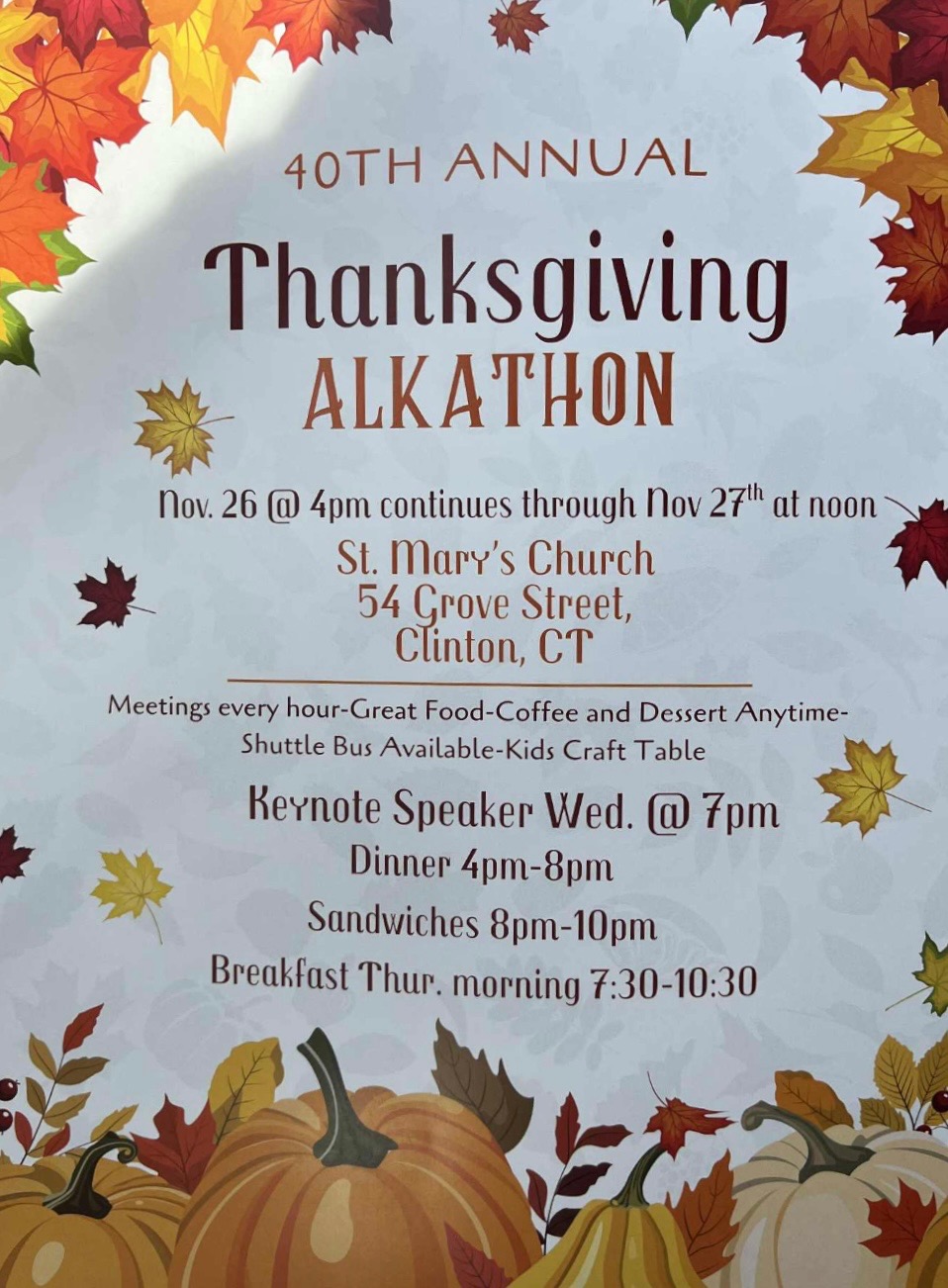Thanksgiving Alkathon – Nov. 26-27, Clinton CT Flyer